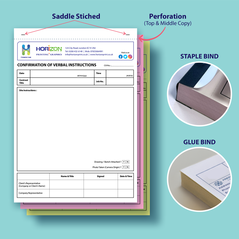 - A4 Duplicate/Triplicate “Confirmation of Verbal Instruction Sheet” (50 Sets per Book).