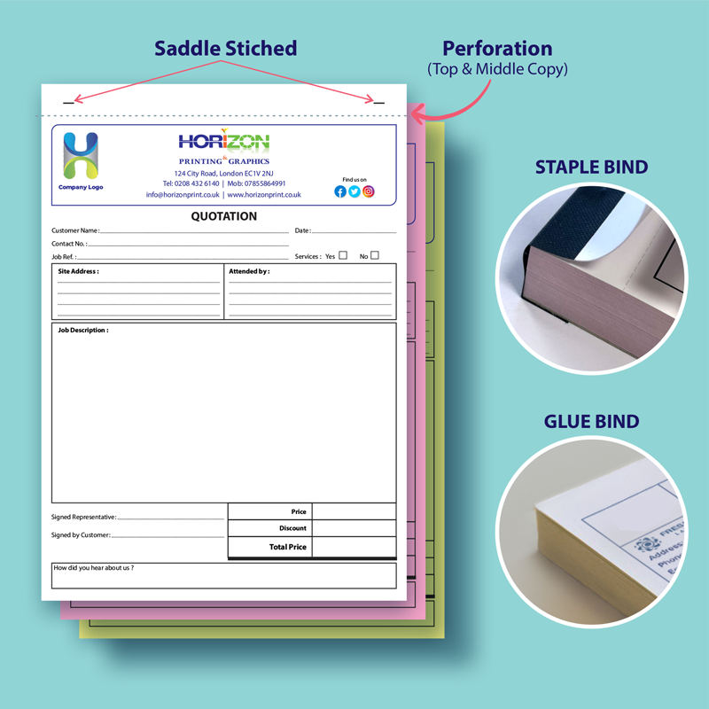 - Binding : Staple Binding or Glue Binding (Binding will be on the top, shorter edge).