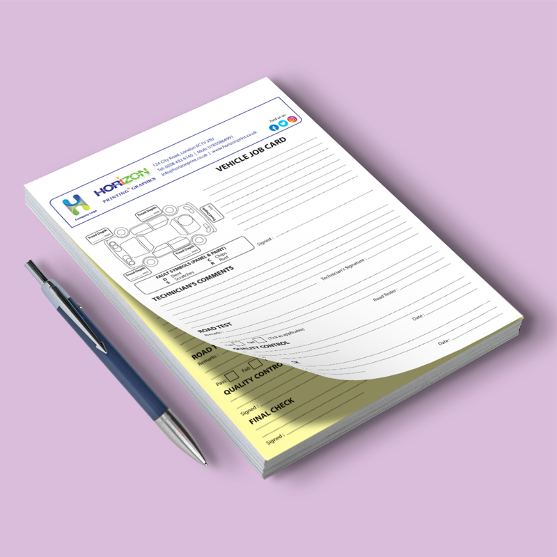 - A4 Duplicate/Triplicate “Vehicle Job Card” (50 Sets per Book).